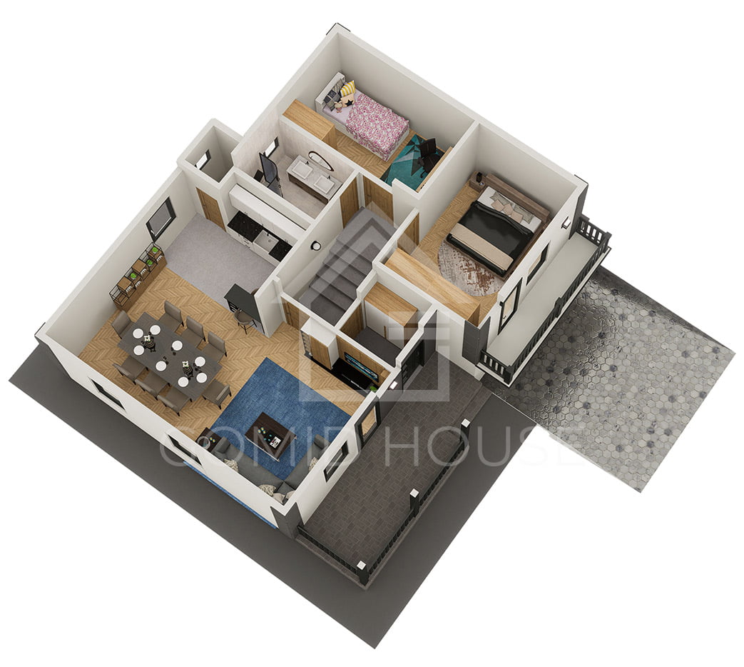 Ova kuća spaja eleganciju s praktičnošću na način koji će vas osvojiti već pri prvom pogledu. S ukupno 86 kvadrata prostora, ovo je dom koji kombinuje prostranost s prekrasnim dizajnom.